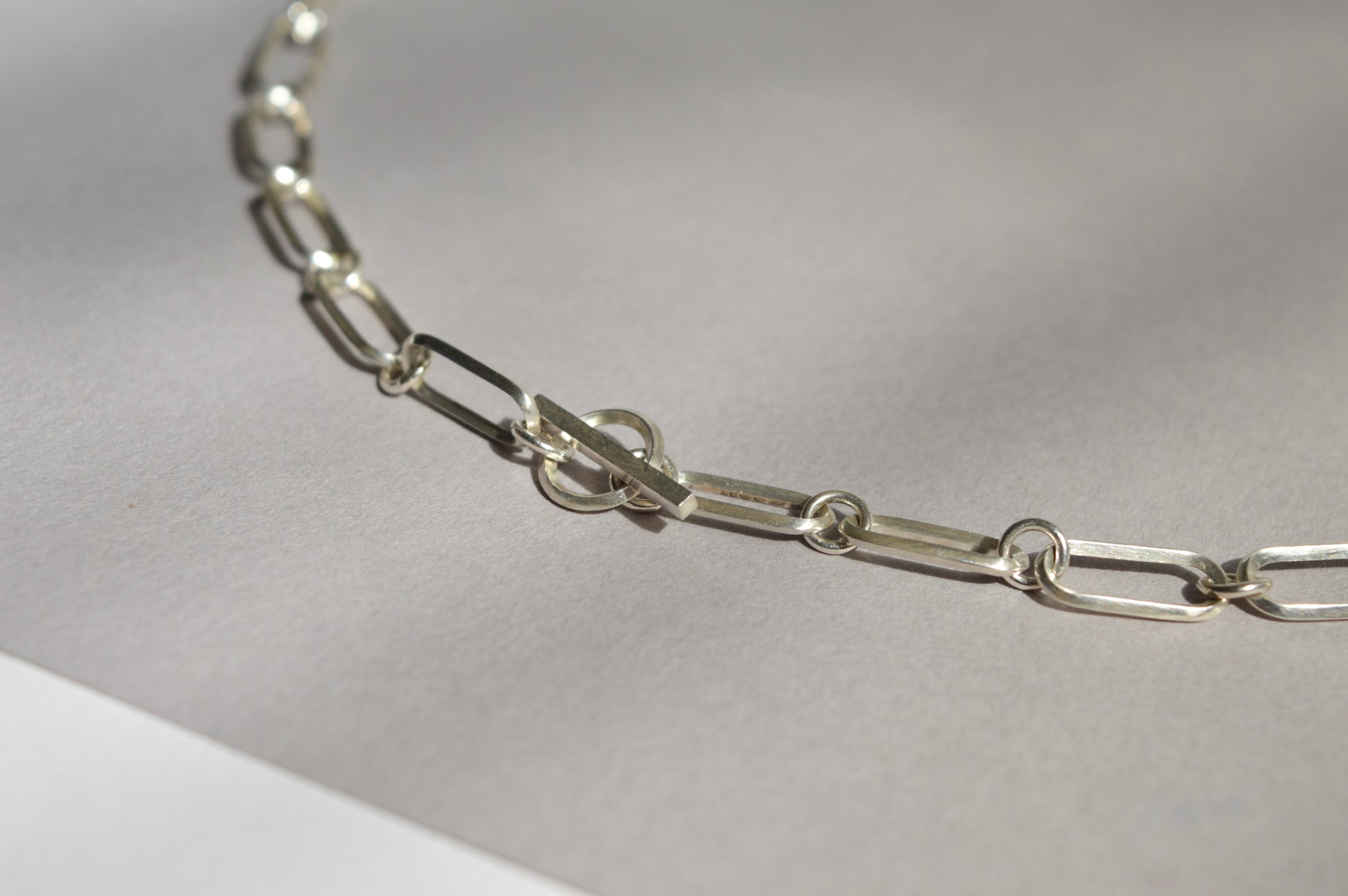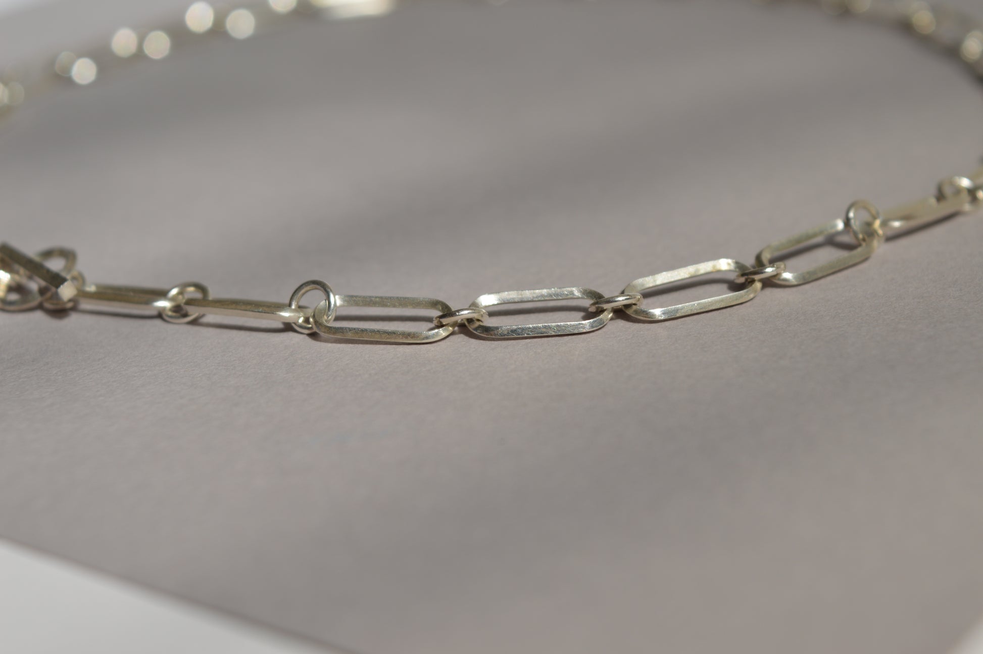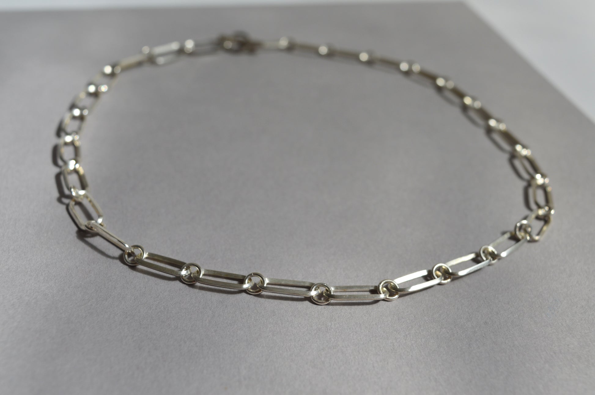 Handmade chain in solid sterling silver, shaped from square wire for clean, sharp lines.